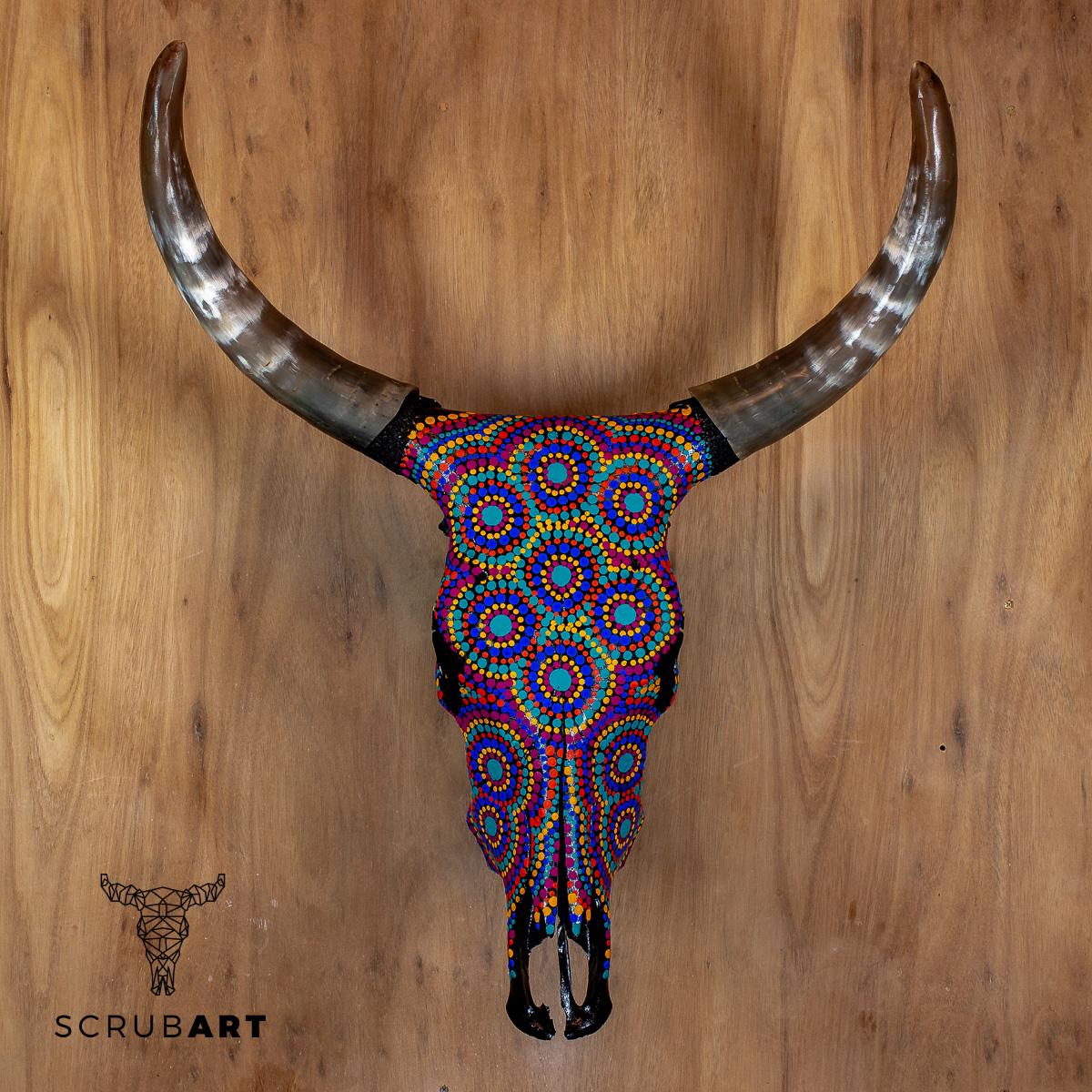 Great care is taken in the restoration of all our skulls, using only the highest quality materials and tools. Get your Scrub Art Australian bull and cow skulls online today
